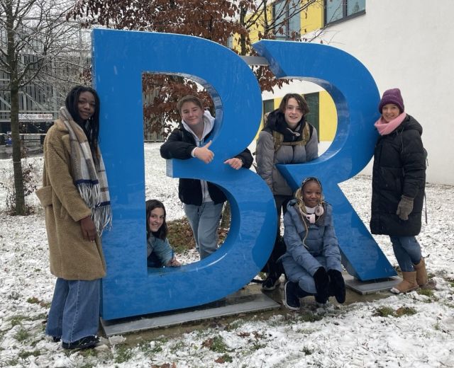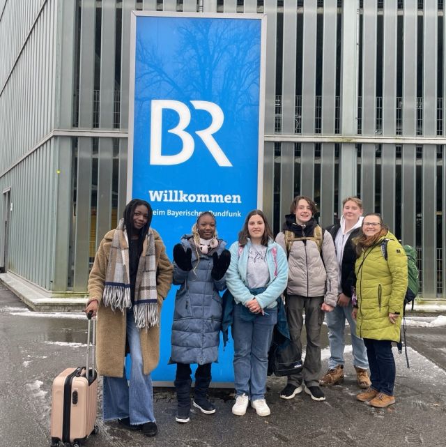 Anfang Dezember duften wieder fünf Schüler unseres neuen Teams gemeinsam mit Frau Hoff und Frau Landendinger als begleitende Lehrkräfte vom 04./05.12.2025 nach München in die Rundfunkgebäude des BR fahren, um dort von den BR-Profis in die Geheimnisse der Radiotechnik und das Handwerk des Rundfunkreporters „eingeweiht“ zu werden. Diesmal waren das erste Mal auf dem neuen Gelände in Freimann, einer richtigen kleinen Medienstadt, und die verschiedenen Teams dürften verschiedene Reportagen u.a. über die „Abendschau“ und den Jugendsender „Puls“ aufnehmen, schneiden und als große Radiosendung präsentieren. Alle waren begeistert und wären gerne noch länger geblieben.