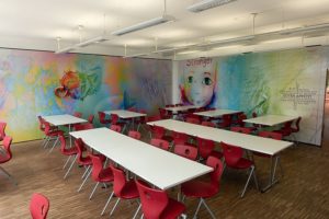 Wir verfügen über eine Mensa mit „offener Küche“ und Pausenverkauf: